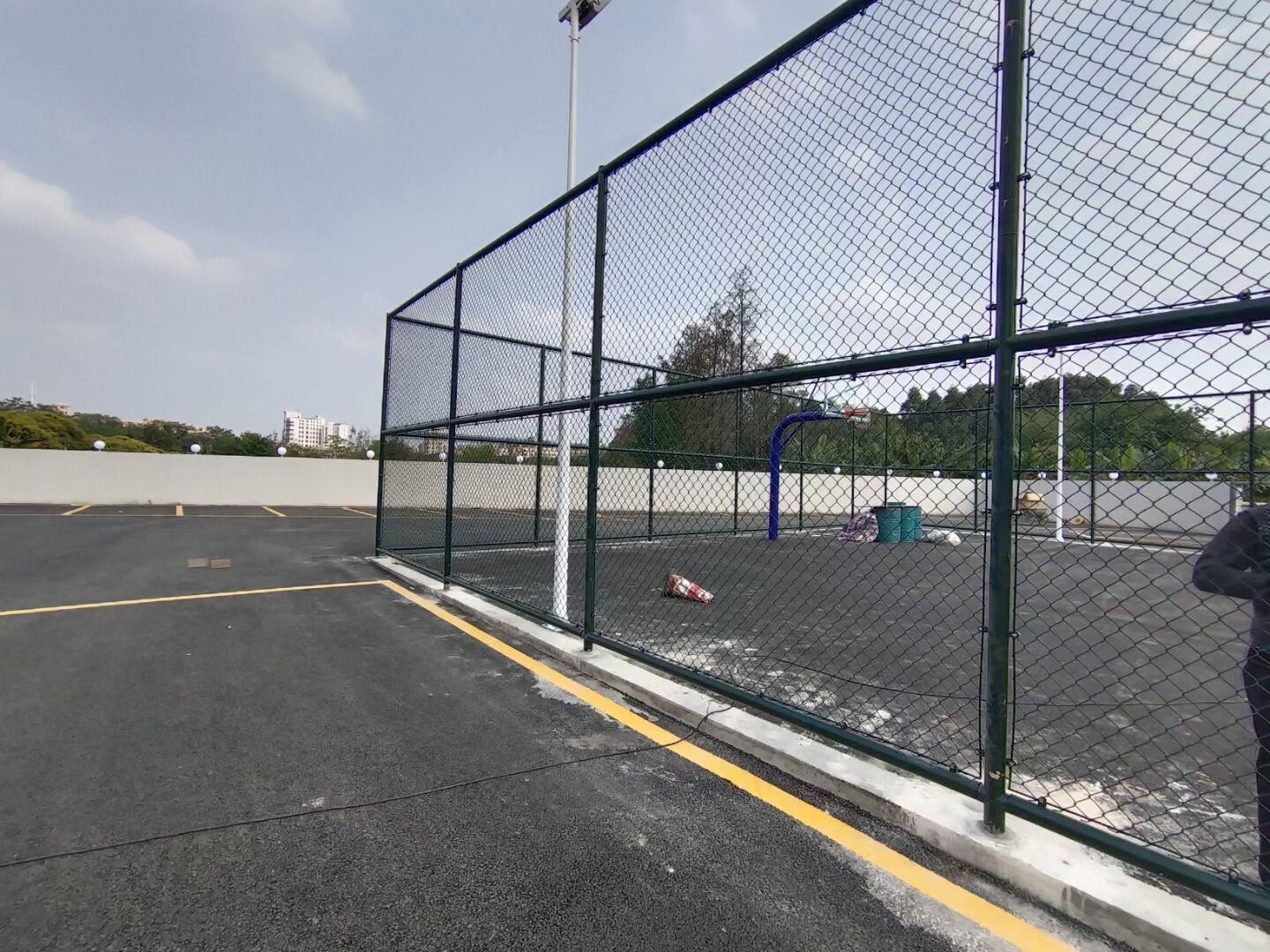 籃球場圍網是專為體育場設計的新型防護產品、網體高防攀爬能力強、籃球場圍網以鋼鐵為基體、耐候性高分子樹脂為外層(厚0.5-1.0MM)、具有防腐防銹、耐酸堿、防潮、絕緣、耐老化、手感好、環保、壽命長等特點、是傳統油漆鍍鋅等涂膜的更新換代產品、其表面為浸塑、包塑處理、可以在現場施工安裝圍柱、圍網產品最大特點是靈活性強、可根據要求隨時調整網片的結構造型和尺寸、體育場圍網特別適用于高度4米以內的作為球場圍網、籃球場圍網、排球場地和體育訓練場地使用。
