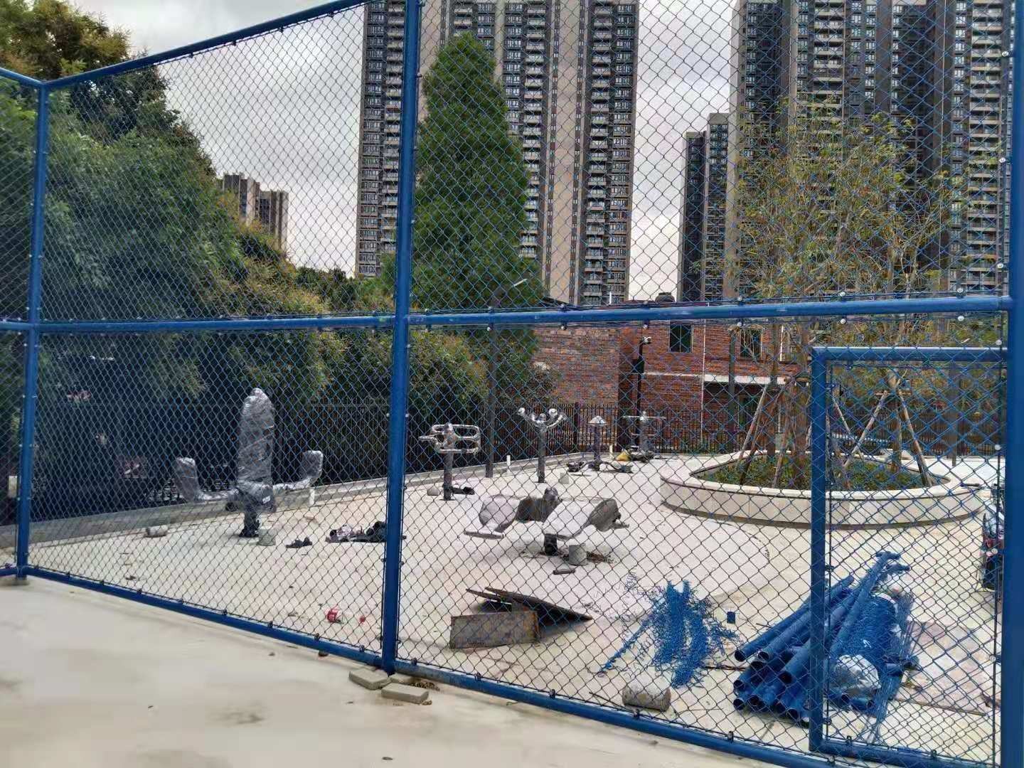 3、掛鉤式籃球場圍網采用組裝結構、立柱和橫桿之間采用套管或包卡進行連接、勾花網與框架通過鋼筋固定在框架內側焊接好的掛鉤上、小巧牢固安裝簡便成本低。