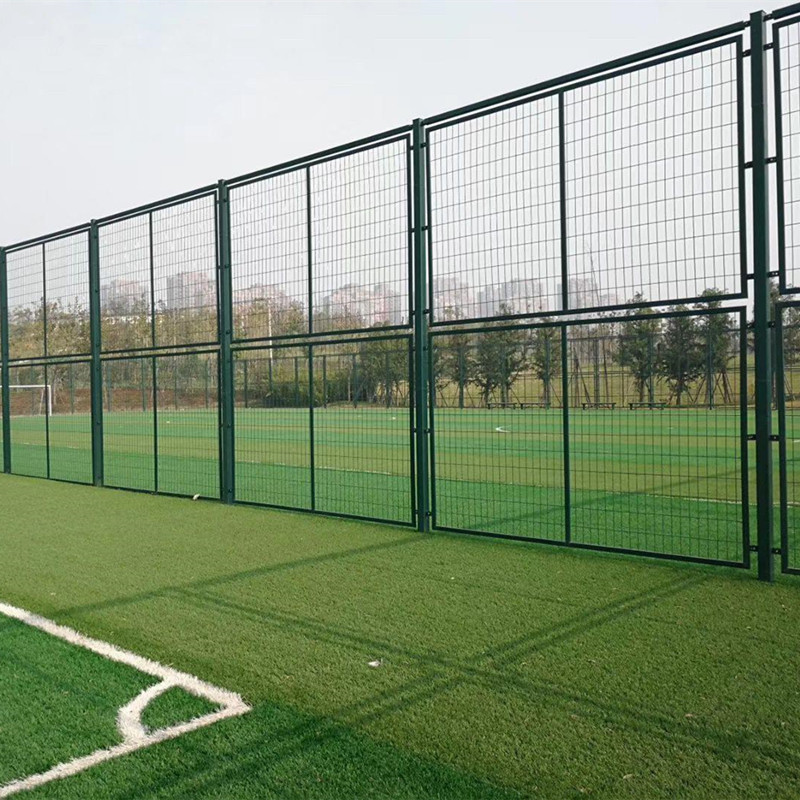 4、U型卡式籃球場圍網是體育場圍網的一種組成形式、采用組裝式結構、立柱和橫桿之間采用套管或包卡進行連接、勾花網與框架通過鋼筋固定在框架內側焊接好的U型卡槽內、U型卡是一種連接件、鋼筋放入卡槽內然后穿上螺絲將鋼筋卡住予以固定。